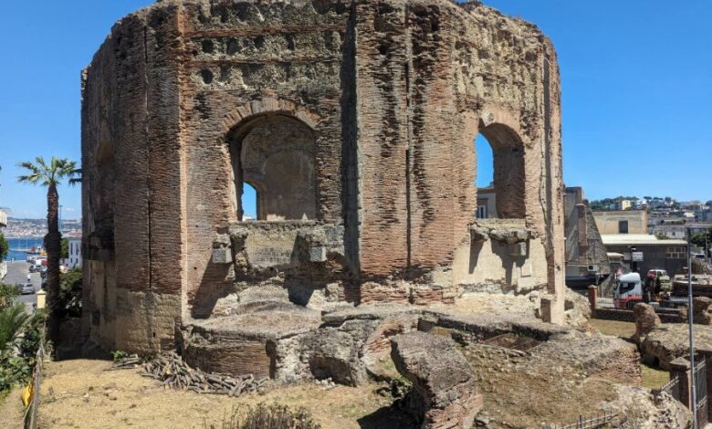 Located directly opposite the current port of Baiae, the Temple of Venus is the building that more than any other defines the coastal archaeological skyline of the area. Here too, the term "temple" is a scholarly legacy from the 18th century; the structure was actually a monumental octagonal bathhouse, featuring a spectacularly large dome (about 26 meters in diameter). From the outside, the building displays the typical Roman brick structure, laid with millimetric precision, with large arched windows that allowed natural lighting and the escape of steam.